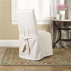 047293153952 Fabric: (As Shown) Natural Pictured in Natural Fabric Bring a designer look to your room with the Cotton Duck Slipcover Collection. These slipcovers feature neutral colors to match any decor. We've just made it easier to dress up your dining room, mix & match in your living room- or even transform your kitchen with these beautiful Dining Room Chair Covers. Casual, soft and comfortable, they are made with 100pct cotton. Loop the ties for a casual look or make a bow to achieve a dressier style- these pieces are not only elegant but also pet-friendly. Surefit, the nation's leading slipcover manufacturer, provides an attractive and affordable solution for consumers who want to quickly and cost-effectively enhance the appearance of a room. Features: -Instantly transforms the look of your room -Natural colored fabric -Machine washable -Also available in Linen, Sage, Bluestone and Burgundy colored fabrics -Pet friendly -100pct cotton -Fits most armless dining room chairs with a maximum back height of 42'' Slipcover Sizing Chart Easy Fit Demo Videos -Classic Slipcover Fit Tips-Stretch Fit Tips -Recliner Fit Tips -Semi Custom Separate Seat Fit Tips -Semi Custom Solo Seat Fit Tips -Tailore
